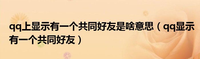 大家好,小晋来为大家解答以下问题,关于qq上显示有一个共同好友是啥意思,qq显示有一个共同好友很多人还不知道,今天让我们一起来看看吧!