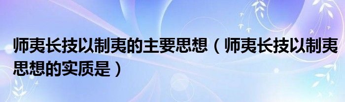 关于师夷长技以制夷的主要思想,师夷长技以制夷思想的实质是这个很多人还不知道,今天菲菲来为大家解答以上的问题,现在让我们一起来看看吧!
