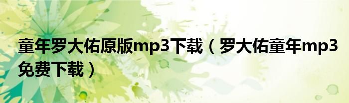 关于童年罗大佑原版mp3下载,罗大佑童年mp3免费下载这个很多人还不知道,今天菲菲来为大家解答以上的问题,现在让我们一起来看看吧!