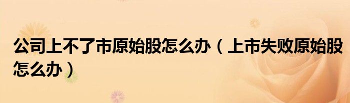 大家好,小晋来为大家解答以下问题,关于公司上不了市原始股怎么办,上市失败原始股怎么办很多人还不知道,今天让我们一起来看看吧!