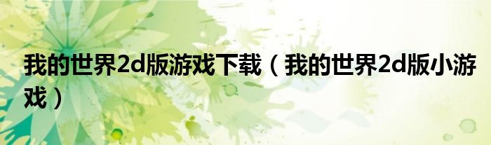 关于我的世界2d版游戏下载,我的世界2d版小游戏这个很多人还不知道,今天菲菲来为大家解答以上的问题,现在让我们一起来看看吧!