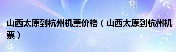 山西太原到杭州机票价格(山西太原到杭州机票)