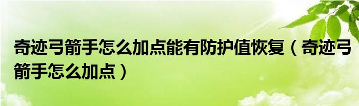 奇迹弓箭手怎么加点能有防护值恢复(奇迹弓箭手怎么加点)
