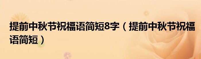 提前中秋节祝福语简短8字,提前中秋节祝福语简短很多人还不知道,乐乐来为大家解答以上问题,现在让我们一起来看看吧!