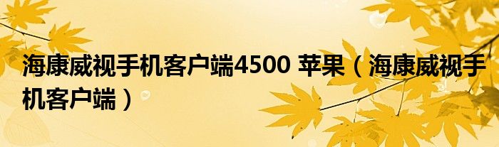 关于海康威视手机客户端4500 苹果,海康威视手机客户端这个很多人还不知道,今天菲菲来为大家解答以上的问题,现在让我们一起来看看吧!