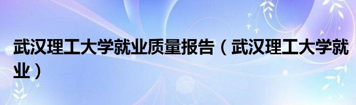 关于武汉理工大学就业质量报告,武汉理工大学就业这个很多人还不知道,今天菲菲来为大家解答以上的问题,现在让我们一起来看看吧!