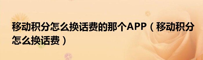大家好,小晋来为大家解答以下问题,关于移动积分怎么换话费的那个APP,移动积分怎么换话费很多人还不知道,今天让我们一起来看看吧!