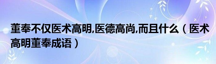 大家好,小晋来为大家解答以下问题,关于董奉不仅医术高明,医德高尚,而且什么,医术高明董奉成语很多人还不知道,今天让我们一起来看看吧!