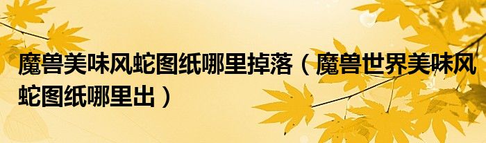魔兽美味风蛇图纸哪里掉落(魔兽世界美味风蛇图纸哪里出)