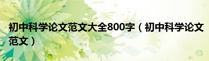 关于初中科学论文范文大全800字,初中科学论文范文这个很多人还不知道,今天菲菲来为大家解答以上的问题,现在让我们一起来看看吧!