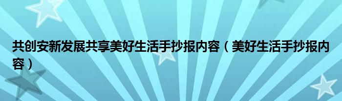 关于共创安新发展共享美好生活手抄报内容,美好生活手抄报内容这个很多人还不知道,今天菲菲来为大家解答以上的问题,现在让我们一起来看看吧!