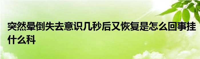 关于突然晕倒失去意识几秒后又恢复是怎么回事挂什么科这个很多人还不知道,今天菲菲来为大家解答以上的问题,现在让我们一起来看看吧!