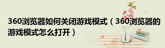 关于360浏览器如何关闭游戏模式,360浏览器的游戏模式怎么打开这个很多人还不知道,今天菲菲来为大家解答以上的问题,现在让我们一起来看看吧!