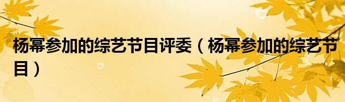 关于杨幂参加的综艺节目评委,杨幂参加的综艺节目这个很多人还不知道,今天菲菲来为大家解答以上的问题,现在让我们一起来看看吧!